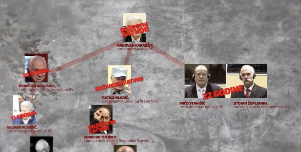 Od Radovana Karadžića, bivšeg predsjednika RS-a, potredsjednika Momčila Krajišnika, Biljane Plavšić, Nikole Koljevića – koji nije dočekao početak suđenja jer je izvršio samoubistvo, Ratka Mladića zapovjednika Glavnog štaba VRS, do Ljubiša Beare, Zdravka Tolimira, Miće Stanišića, Stojana Župljanina, Radislava Krstića, Vujadina Popovića, Drage Nikolića. A to je tek vrh piramide koja uključe i pojedince presuđene pred sudom Bosne i Hercegovine, ali i sudovima izvan BiH.